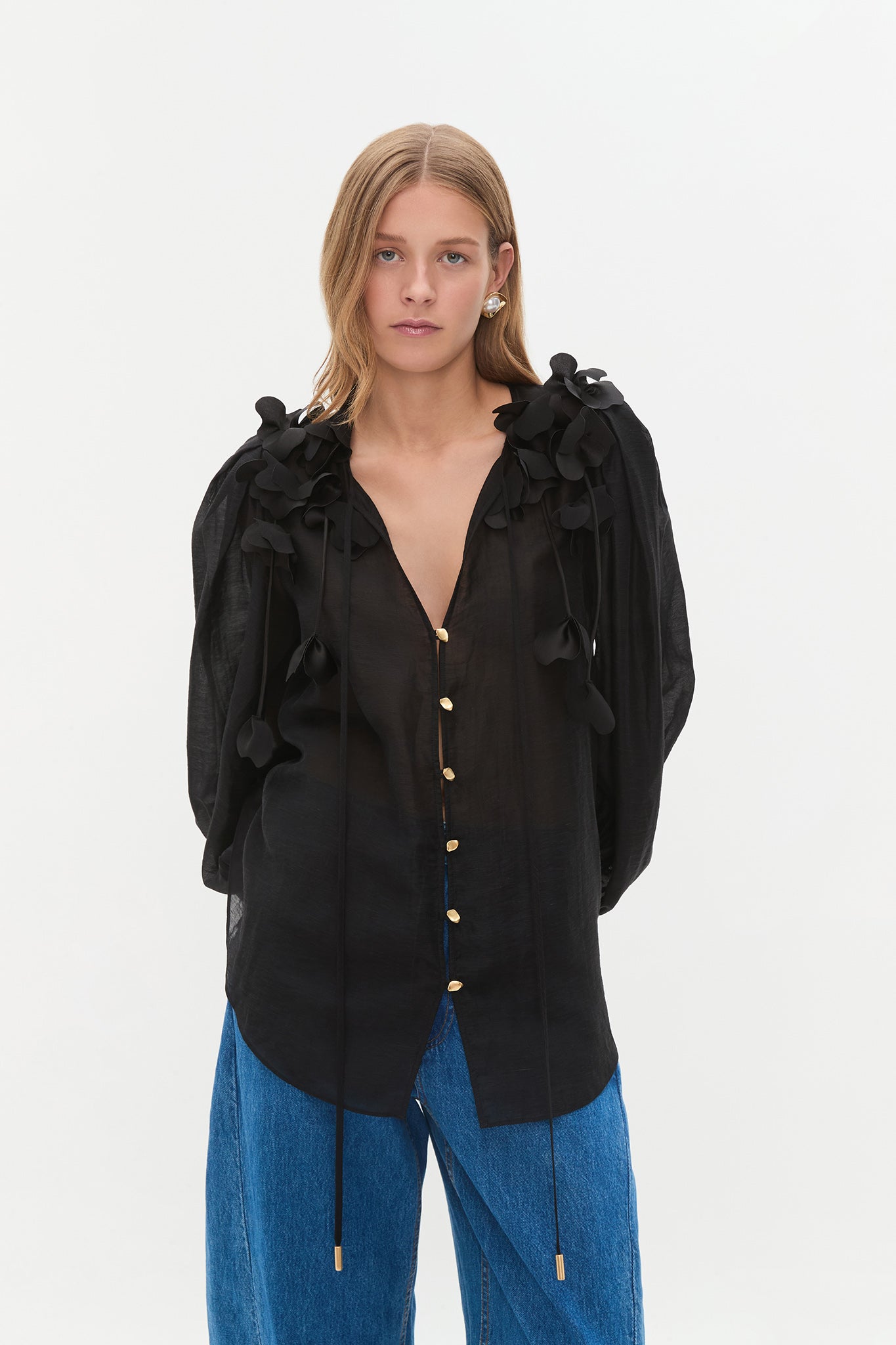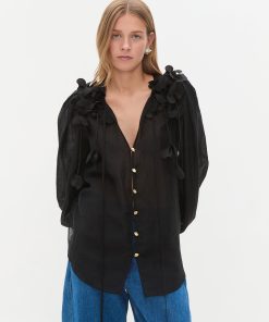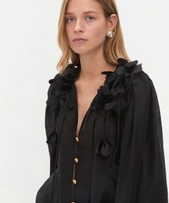 AJE Women’s Camille Flower Blouse | Black