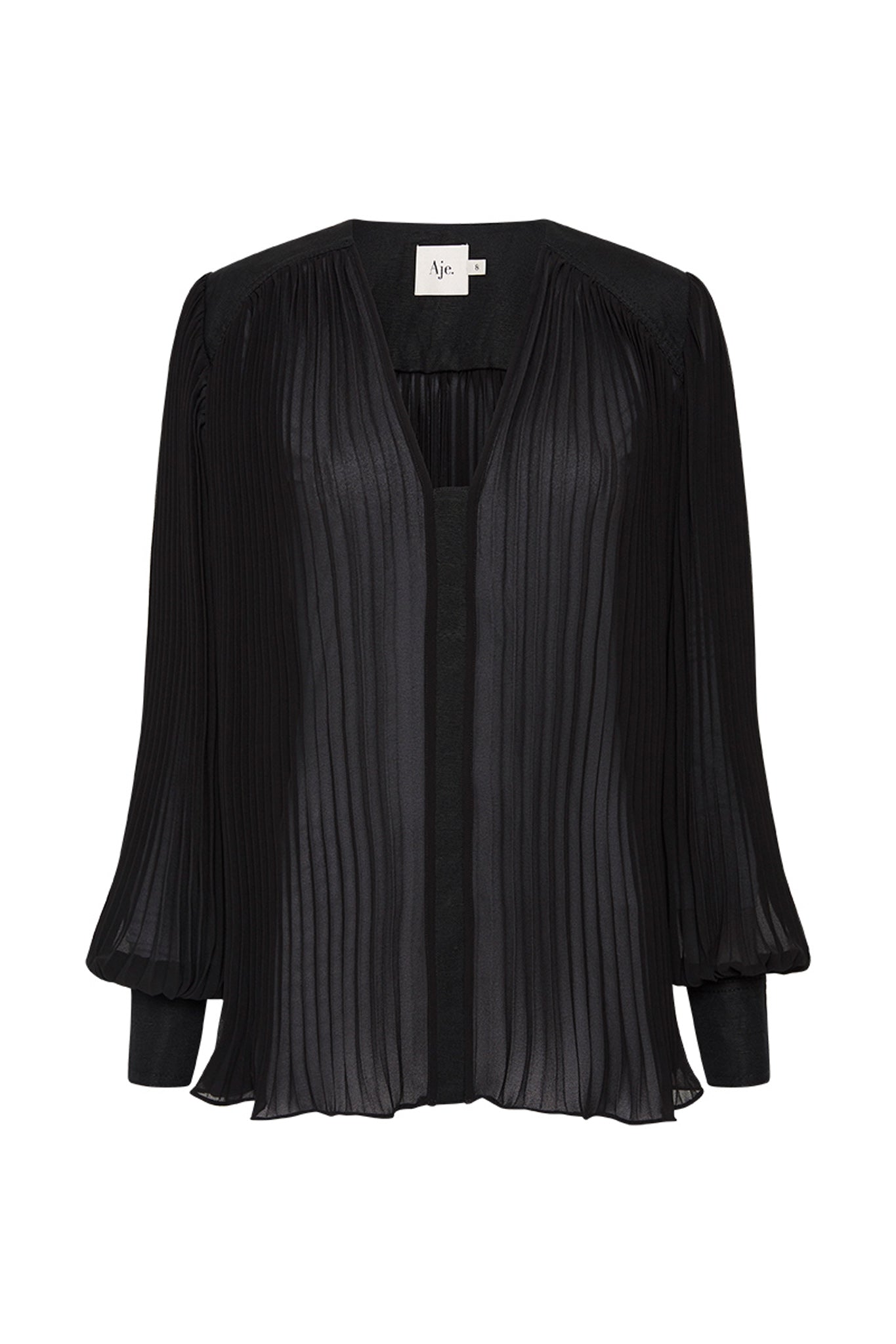 - Blouson sleeves with contrast cuffs