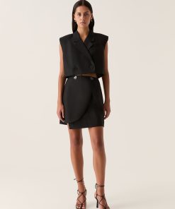AJE Women’s Flight Asymmetric Wrap Skirt | Black