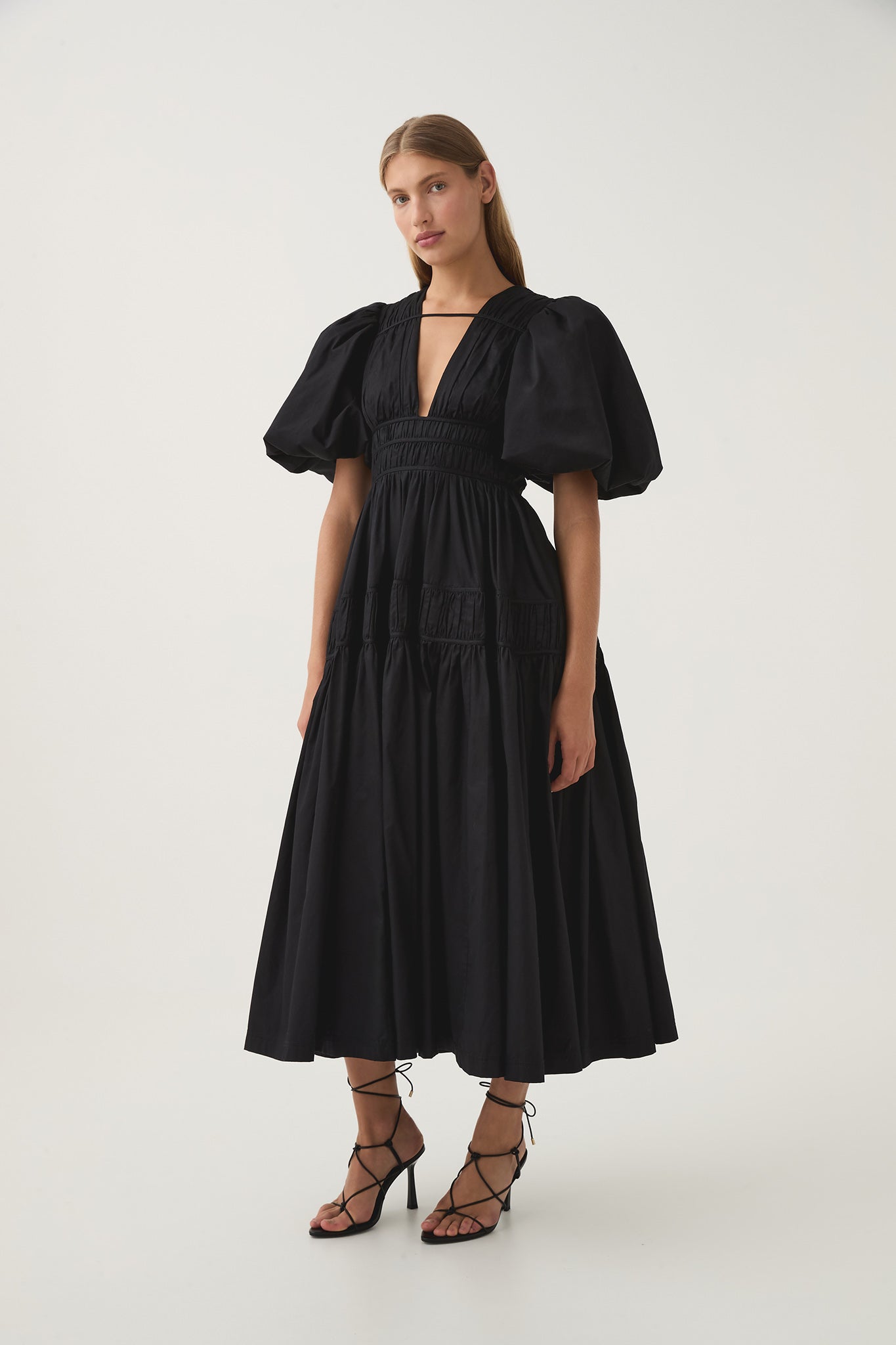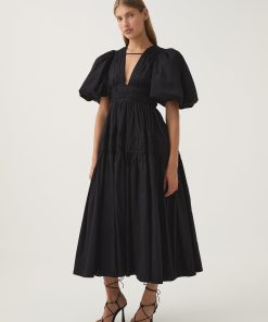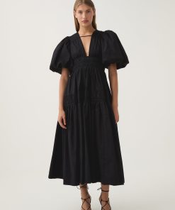 AJE Women’s Wedding Fallingwater Ruched Midi Dress | Black