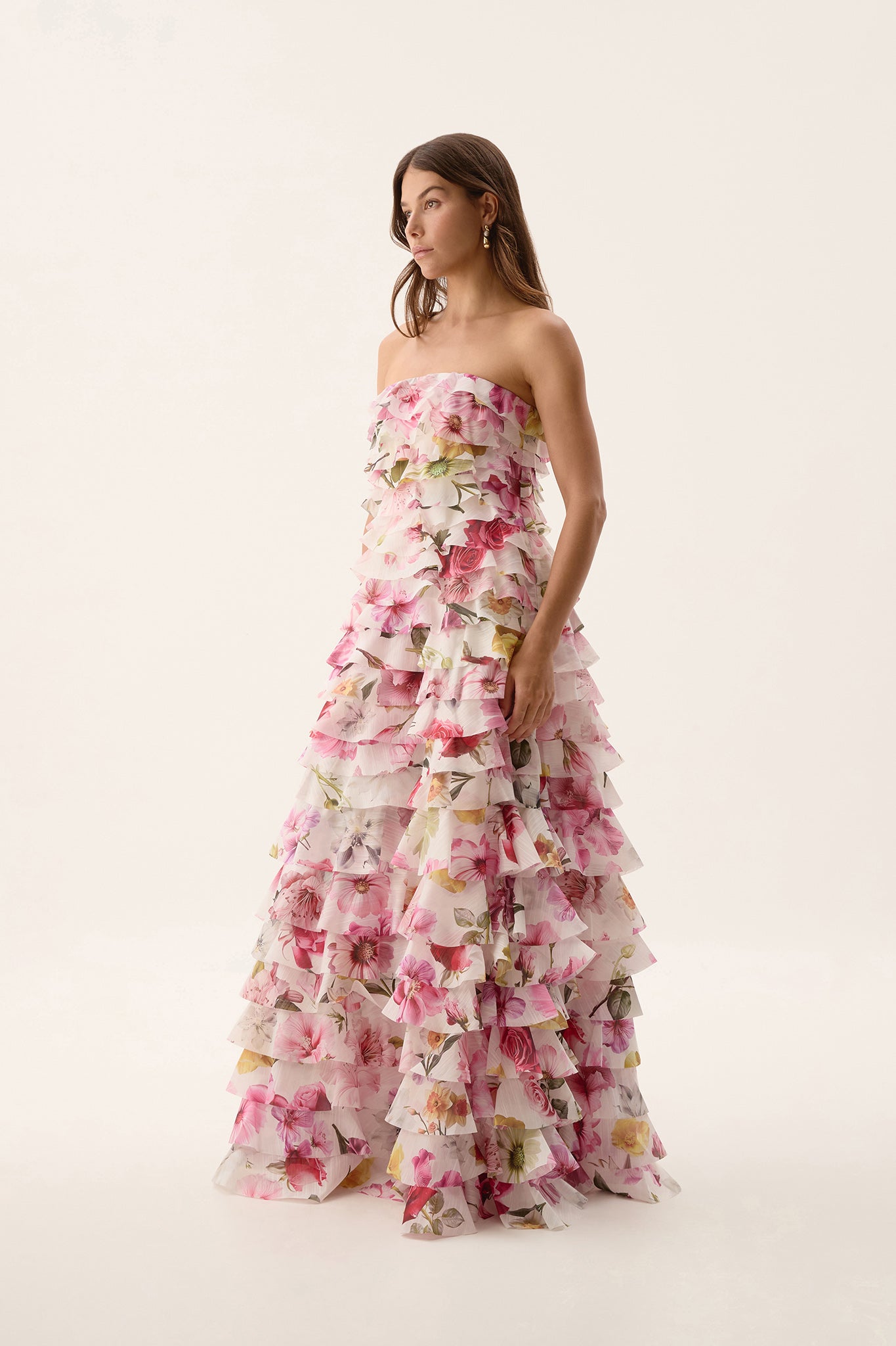 - Horizontal gauze frills throughout